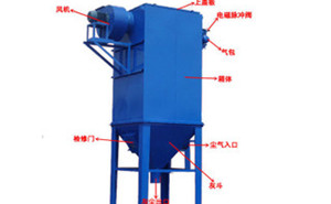 單機(jī)除塵器由過濾室、濾袋、凈氣室、灰斗、翻板閥、脈沖噴吹裝置、系統(tǒng)風(fēng)機(jī)、電控箱等組成。